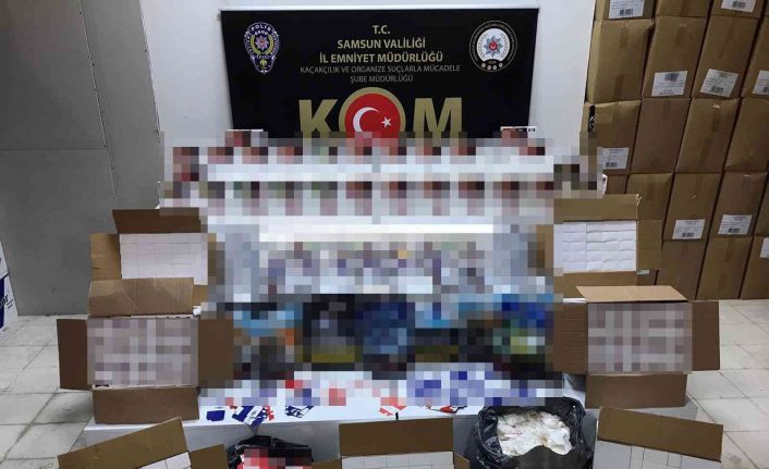 Samsun’da kaçakçılık polisi çok sayıda kaçak makaron, tütün ve sigara sarma kağıdı ele geçirdi.