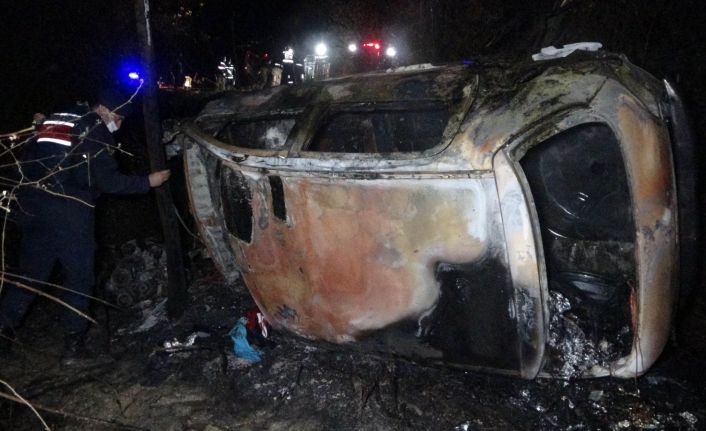 Samsun’da şarampole yuvarlanan bir otomobil alev aldı, araçtaki 2 kişi yanarak hayatını kaybetti.