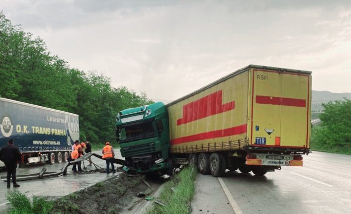 Kaza, Samsun Kavak ilçesi Ankara karayolunun 39. kilometresi Saraçoğlu mevkisinde meydana geldi. Edinilen bilgiye göre, Ömer Erdoğan idaresindeki 99 XU 344 çekici ve 99 ZD 244 dorse plakalı tır direksiyon hakimiyetinin kaybetmesi sonucu makaslama yaparak refüjdeki bariyere çarpıp su kanalına girdi. Tırın çarptığı bariyer koparak yola savruldu. Bu sırada İbrahim Kukul yönetimindeki 03 SN 095 plakalı otomobil de yola savrulan bariyere çarptı. Kazada yaralanan olmazken her iki araçta da maddi hasar meydana geldi.
