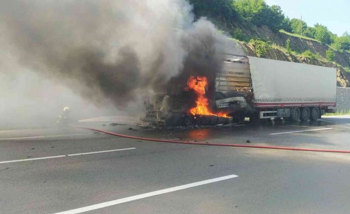 Yangın, Samsun’un Kavak ilçesi Çakallı mevkisi Samsun-Ankara karayolu üzerinde meydana geldi. Edinilen bilgiye göre, seyir halindeki tırda yangın meydana geldi. Dumanları fark eden sürücü aracını yolun kenarına park edip yangın söndürme tüpü ile alevlere müdahale etti. Ancak alevler tırın çekicisini sardı.
