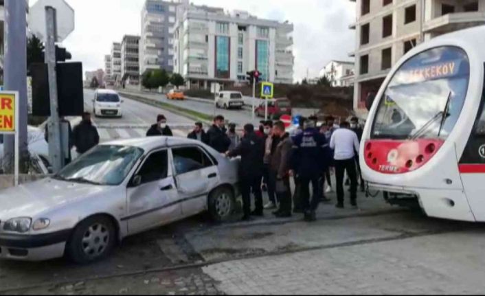 Samsun’da tramvayın otomobile çarptığı kaza maddi hasarla atlatıldı.