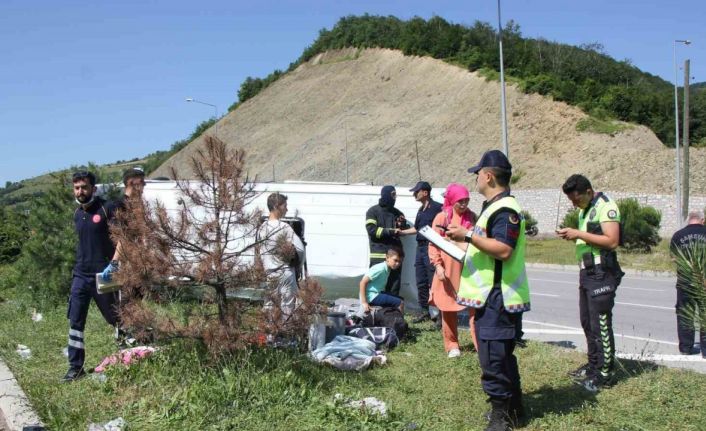 Bursa’dan düğünden dönen 13 kişinin bulunduğu Erdoğan Yıldırım (56) idaresindeki 55 C 73 06 plakalı minibüs, Samsun’un Terme ilçesine giderken saat 09.30 sıralarında Kavak ilçesi Karaaslan Mahallesi Gürgendağı mevkisinde kaza yaptı. Kazada yan yatarak 25 metre sürüklenen minibüs, yol kenarına çarparak durabildi. Kazada minibüste bulunan Fatma Demirci (37), Fatmanur Yıldırım (21), Öykü Yıldırım (15), Eren Gülmez (22), İpek Yıldırım (6), Şaduman Gülmez(39), Kemal Güner(69), Nurten Yıldırım ve Hatice Yıldırım yaralandı. Yaralılar Samsun’daki hastanelere kaldırılarak tedavi altına alındı.