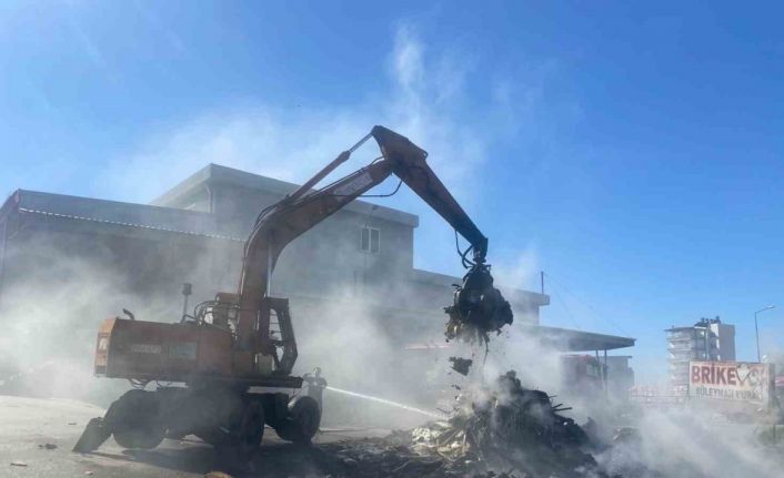 Sanayi sitesinde hurda yangını iş yerlerine sıçramadan söndürüldü