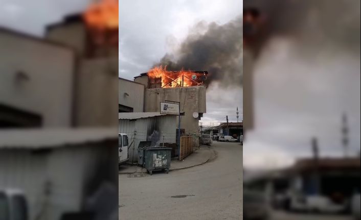 Sanayi sitesindeki dükkanın çatı katı alev alev yandı