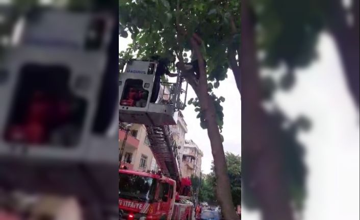 Sancaktepe’de dut toplamak için ağaca çıkan çocuk geri inemeyince itfaiye ekipleri tarafından kurtarıldı.