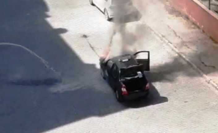 Şanlıurfa’nın Birecik ilçesinde seyir halindeki otomobilin alev alev yandığı anlar kameraya yansıdı.