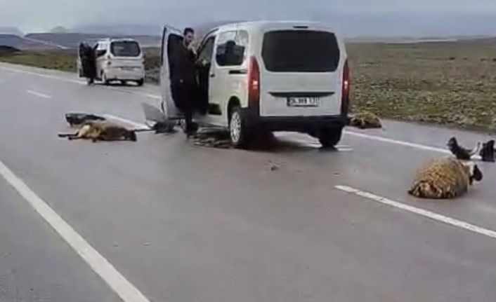 Şanlıurfa’nın Siverek ilçesinde hafif ticari aracın yolun karşısına geçen sürüye çarpması sonucu 10 koyun telef oldu.