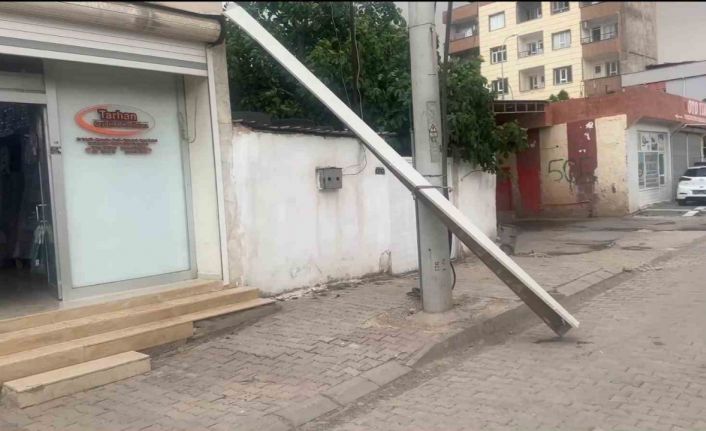 Şanlıurfa’nın Ceylanpınar ilçesinde etkili olan fırtına nedeniyle ağaçlar devrildi. Rüzgarın şiddeti ile birçok iş yeri tabelası yerinden söküldü, havada uçuşan cisimler, yollardaki sürücülere zor anlar yaşattı.