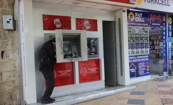 Sabah saatlerinde para çekmeye gelen vatandaşlar ATM’nin hasarlı olduğunu görünce işlemlerini yapmak için başka ATM’lere yöneldi.