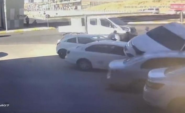 Şanlıurfa’da kavşaktan yola kontrolsüz çıkan otomobil, önce seyir halindeki halk otobüsüne çarptı, ardından park halindeki otomobillerin üzerine çıkarak durdu. Yaşanan ilginç kaza anı, güvenlik kamerasına yansıdı.