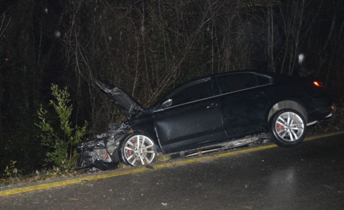 Bartın’da kontrolden çıkan otomobil karşı şeritten gelen hafif ticari araca çarptı. Hafif ticari aracı şarampoldeki ağaç dalları tuttu. Kazada 2 kişi yaralandı.