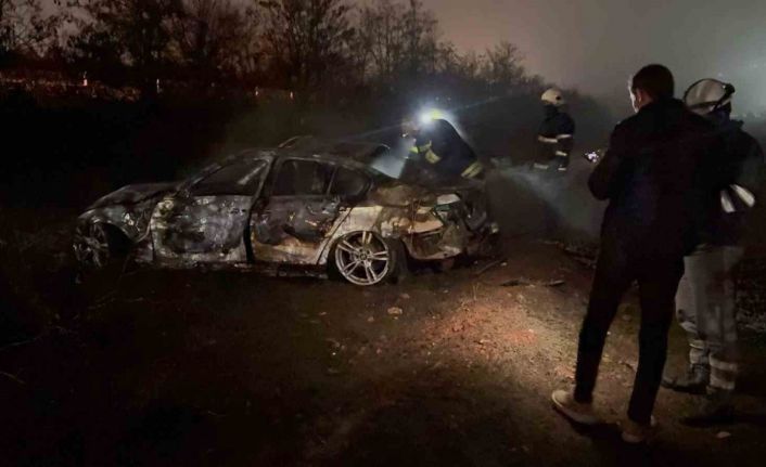 Şarampole uçan otomobil alev aldı: Canlarını son anda kurtardılar