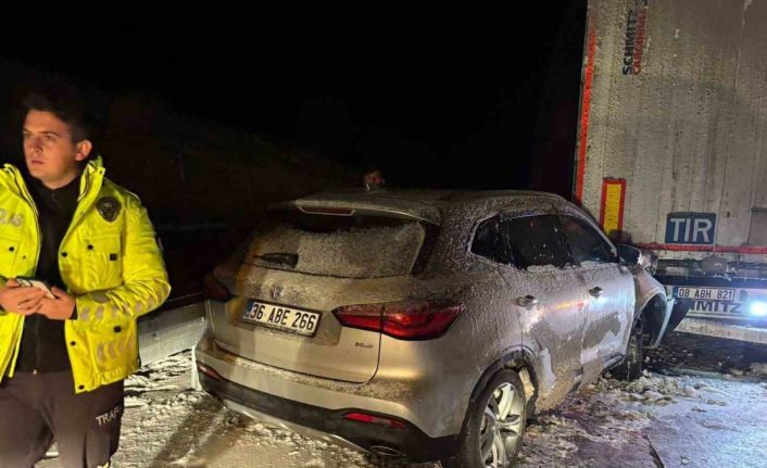 KARS (İHA) – Kars’ın Sarıkamış ilçesinde etkili olan kar ve tipi nedeniyle araçlar yolda mahsur kaldı. Mahsur kalan araçların imdadına karayolları ve Özel İdare ekipleri yetişti. Bir otomobil ise kayarak tıra arkadan çarptı.