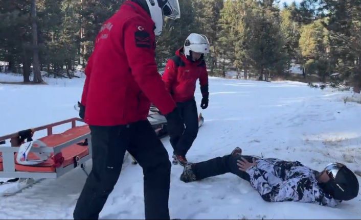 Sarıkamış Kayak Merkezi’nde senaryo gereği yaralanma olayının 112 Acil Çağrı Merkezi’ne bildirilmesi üzerine JAK Timleri harekete geçti. Kısa sürede kar motorlarıyla olay bölgesine ulaşan ekipler, 2 ayrı nokta kayarken düşerek yaralanan vatandaşları önce sedyeye aldı, ardından da kar motorunun arkasındaki kızağa yerleştirdi. Sarıkamış oteller bölgesine getirilen yaralılar burada ambulansa alınarak Sarıkamış Devlet Hastanesi’ne sevk edildi. JAK timlerinin tatbikatı gerçeği aratmazken, bu tür tatbikatlar muhtemel kış kazalarında hızlı ve etkin müdahale açısından büyük önem taşıyor. Sarıkamış’ta gerçekleştirilen tatbikat, JAK timlerinin profesyonelliğini bir kez daha gözler önüne serdi.
