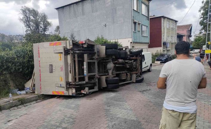 Sarıyer’de dar yokuşta aşağı doğru seyir halindeyken freni tutmayan kamyonet devrildi. Şoför kazayı ufak sıyrıklarla atlattı.