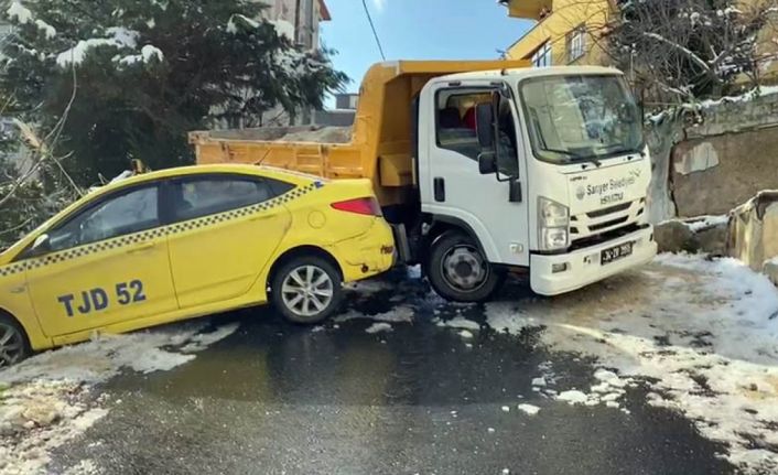 Kaza Sarıyer Ferahevler Mahallesi Rüzgargülü Sokak üzerinde saat 11.00’de buzlanan yolda yokuş aşağı kayarak ağaca çarpan ticari taksiye, başka bir ticari taksi çarpmıştı. Kimsenin yaralanmadığı kazanın ardından aynı yerde bir kaza daha meydana geldi. Araçlara tuzlama çalışması yapan Sarıyer Belediyesinin 34 ZR 3955 plakalı kamyonu çarptı. Kazada yaralanan olmadığı öğrenildi.