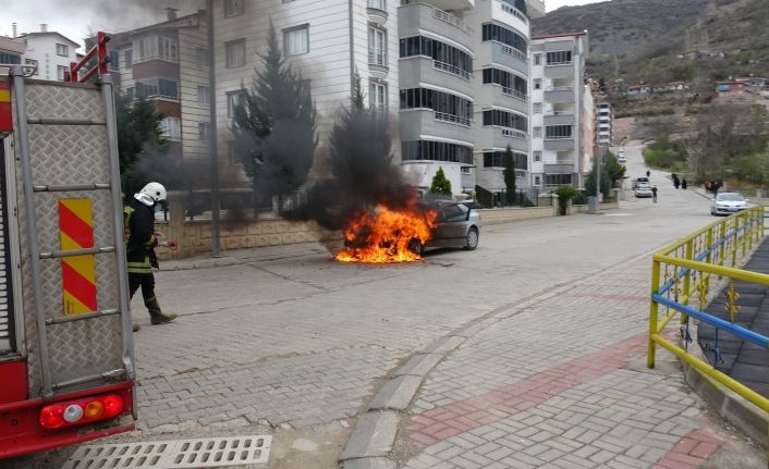 Tokat’ta satın almak istediği otomobille notere giden şahıs bir anda alev alan araçtan canını son anda kurtardı.