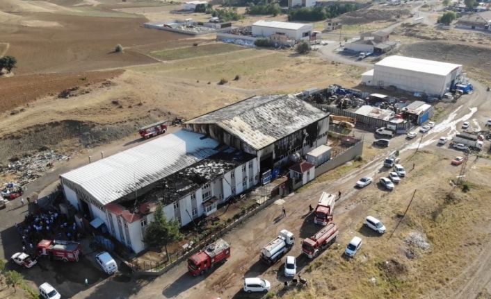 Yangın sonrası büyük çapta maddi hasarın oluştuğu fabrika dron ile havadan görüntülendi.