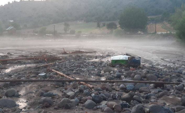 İrfan Kabak ise, "Zarar çok var. 35 dönümlük alanı taşla doldurmuş. Şeftaliler, asmalar, traktörlerde çok hasar var. Evde de hasar var. Yaklaşık 250 bin liralık hasar var" diye konuştu.