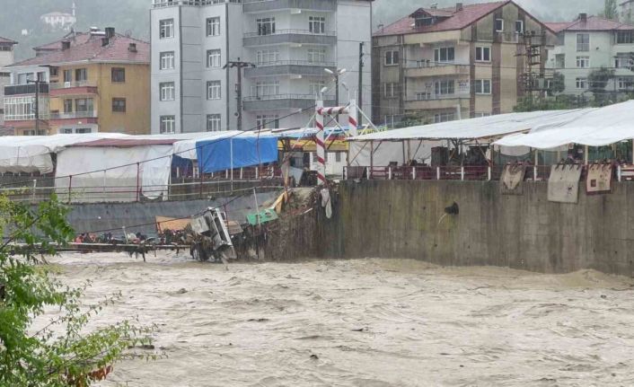 Zonguldak’ın Devrek ilçesinde sel nedeniyle asma köprü yıkılırken, evler, iş yerleri ve araçlar sular altında kaldı.