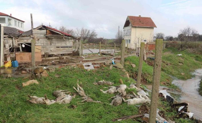 Edirne’nin Enez ilçesinde sel sularının şiddetine dayanamayan ahırın duvarları yıkıldı. Ahırda bulunan onlarca hayvan telef oldu.