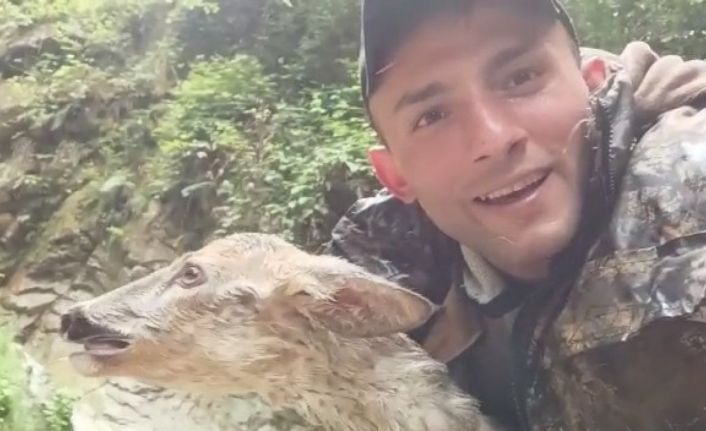 Olay Rize’nin Hemşin ilçesinde meydana geldi. Hemşin ilçesinde bulunan bir şelalede mahsur kalan karacayı gören Nazım Fırat adlı vatandaş, mahsur kalan karacayı kendi çabalarıyla kurtardı. Şelalede mahsur kalan karacayı kurtaran vatandaş, karacayla anı fotoğrafı çekildikten sonra tekrardan doğaya saldı.