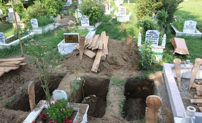 Düzce’de 6 gün önce başlayan şiddetli yağış sel felaketine neden olmuştu. Sel sularına kapılıp kaybolan 7 yaşındaki Sanem Kaplan’ın cansız bedeni arama kurtarma çalışmaları sonrasında sel felaketinden 5 gün sonra Uğurlu Köyü mevkiinde bulundu. Felaketin 6’ncı gününde ise 39 yaşındaki anne Nilgün Kaplan ve 9 yaşındaki kızı Funda Kaplan’ın cansız bedenleri aynı mevkide bulundu. Daha sonrasında Akçakoca Devlet Hastanesi morgundan alınan anne ve kızlarının cenazeleri bugün Aziziye Merkez camiinde kılınan cenaze namazı sonrasında Aziziye Mahalle Mezarlığında gözyaşları arasında son yolculuğuna uğurlandı. Anne ve 2 kızının cenazeleri için Aziziye Mahalle mezarlığında yan yana kazılan 3 mezar yürekleri sızlattı. Gözyaşları içerisinde son yolculuğuna uğurlanan anne ve kızları yan yana defnedildi.