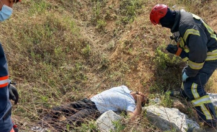 Manisa’nın Şehzadeler ilçesinde sepetli motosikletiyle uçuruma yuvarlanan genç itfaiye ekipleri tarafından kurtarıldı. İtfaiye ekipleri tarafından uçurumdan çıkarılan genç, sağlık ekipleri tarafından ambulansla hastaneye kaldırıldı.