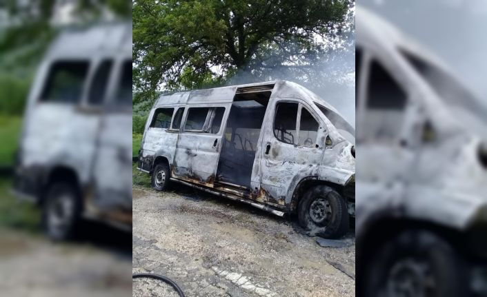 Bilecik’te seyir halindeyken aniden motor kısmından alevler yükselen minibüs yanarak kullanılmaz hale gelirken, araç içinde bulunan 6 kişi adeta ölümden döndü.