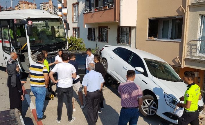 Karabük’te şoförünün el frenini çekmeyi unuttuğu servis aracı park halindeki 2 otomobile çarptı. Otomobillerin hurdaya döndüğü kazada servis aracının arkasından koşarak binmeye çalışan sürücü yerde sürüklenerek yaralandı.