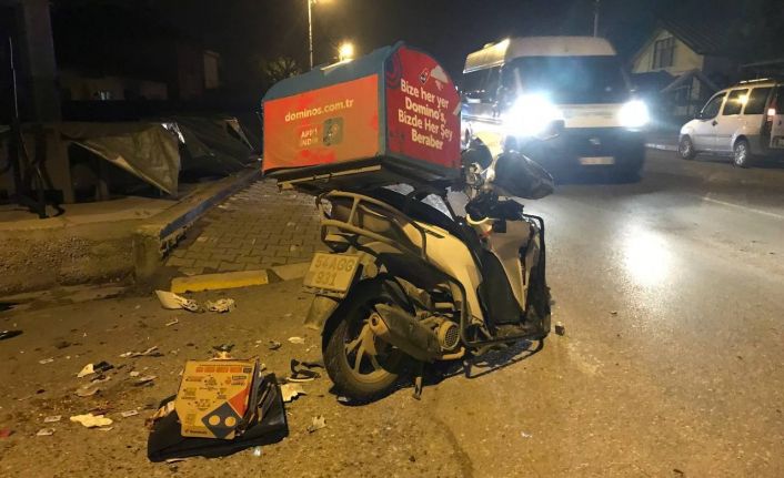 Sakarya’nın Akyazı ilçesinde servis minibüsü ile paket götüren Domino’s Pizza kuryesinin kullandığı motosiklet çarpıştı. Kazada motosiklet kuryesi ağır yaralandı.