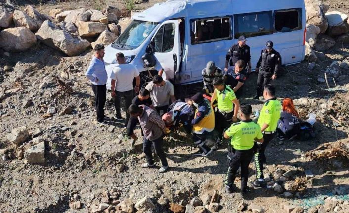 Bursa’da geri manevra yapan servis minibüsü takla atarak refüje uçtu, kazada sürücü yaralandı.