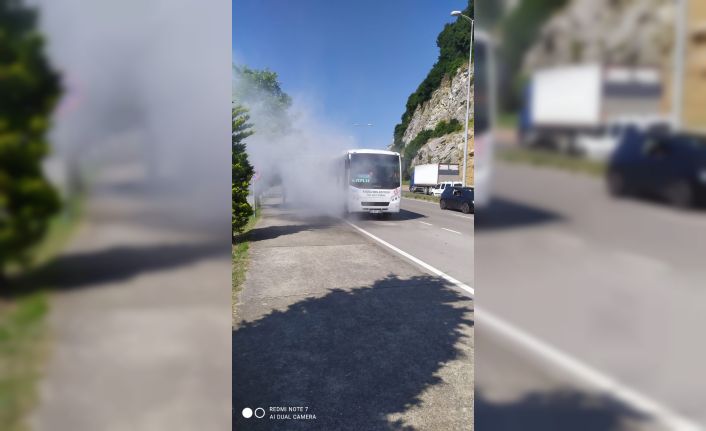 Zonguldak’tan Kozlu ilçesine seyir halinde ilerleyen halk otobüsünden kıvılcımlar çıkmaya başlayınca yürekler ağızlara geldi. Otobüsün boş olması da büyük bir faciayı önledi.