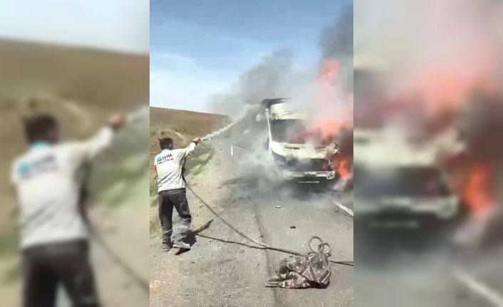 Niğde’de seyir halindeyken alev alan kamyonet kullanılamaz hale geldi.