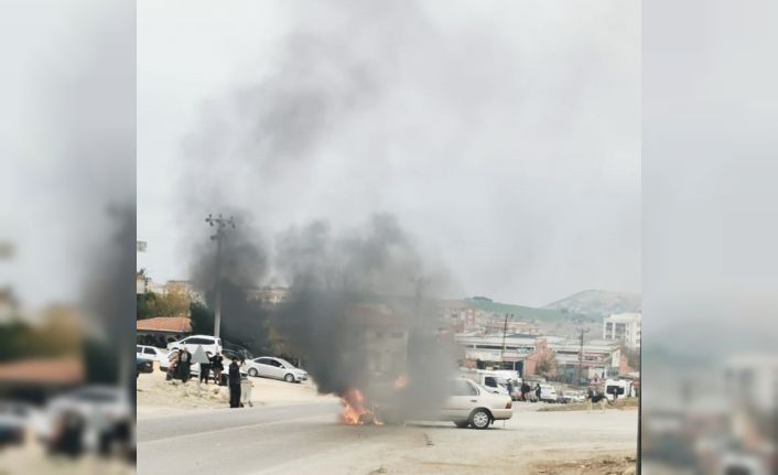 Adıyaman’ın Besni ilçesinde seyir halinde olan bir otomobil yandı.
