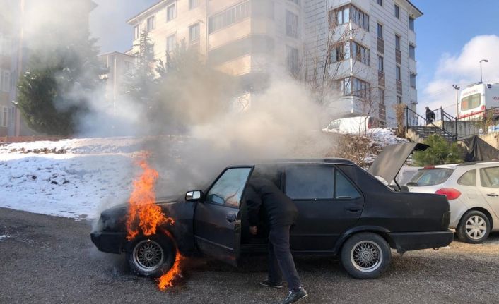 Karabük’te seyir halindeyken alev alan otomobilde maddi hasar oluşurken sürücü yara almadan kurtuldu.