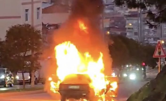 Seyir halindeki otomobil alev alev yandı