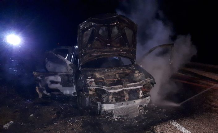 Tokat’ın Niksar ilçesinde alev topuna dönen otomobil tamamen yanarak kullanılamaz hale geldi.