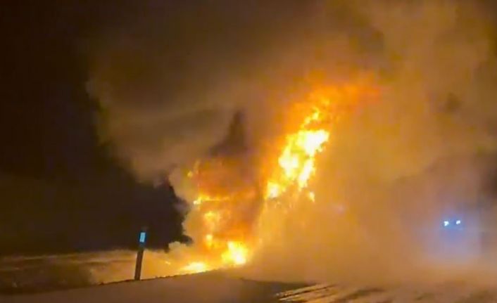 Şanlıurfa’nın Siverek ilçesinde seyir halindeyken alev alan tır, kısa sürede tamamen yanarak kullanılamaz hale geldi. Sürücü, son anda araçtan atlayarak kurtuldu.