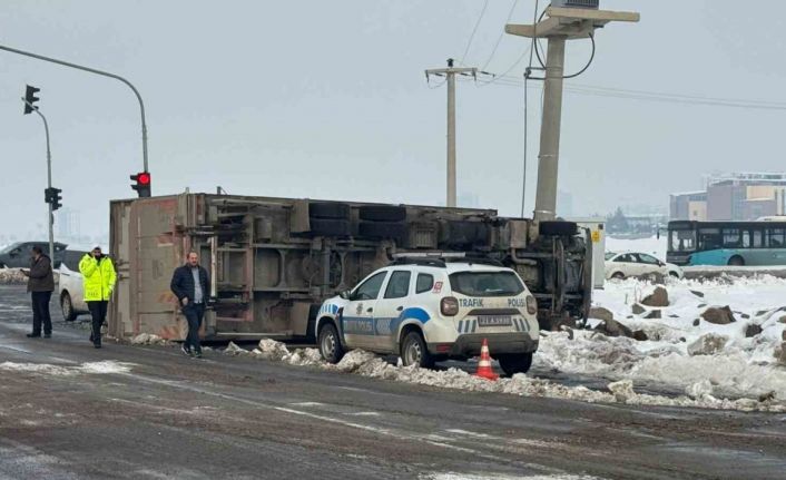 Edinilen bilgilere göre, ilçenin Talaytepe Mahallesi Sultan Sasa Bulvarı’nda seyir halindeki tır, kayganlaşan yolda sürücüsünün direksiyon hakimiyetini kaybetmesi sonucu devrildi. İhbar üzerine olay yerine polis ve sağlık ekibi sevk edildi. Sürücü, sağlık ekiplerinin ilk müdahalesinin ardından hastaneye sevk edildi.