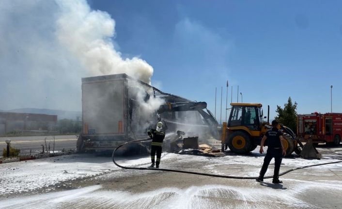 Ekiplerin müdahalesiyle yangın söndürülürken tırda maddi hasar meydana geldi.
