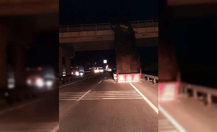 Bilecik’in Bozüyük ilçesinde seyir halindeyken dorsesi açılan kamyon köprüye çarptı. Çarpmanın etkisiyle dorse kamyondan ayrılarak yola düşerken, kamyon bariyerlere çarparak durabildi.