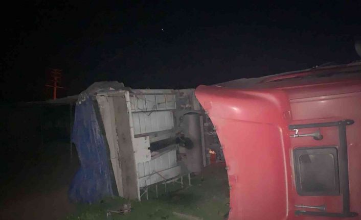 Şiddetli fırtına seyir halindeki tırı devirdi