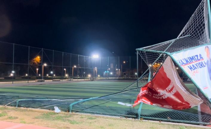 Bursa’da etkisini artıran şiddetli lodos, millet bahçesinde bulunan bir halı sahayı yerle bir etti.