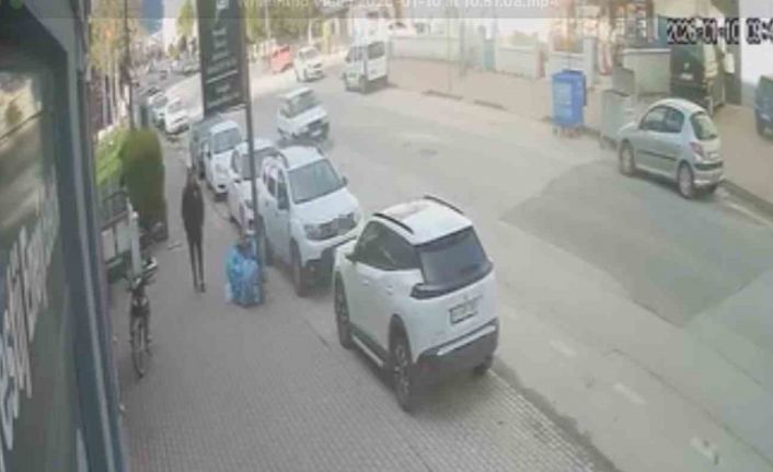 Aynı anlarda lodosun etkisiyle bir çöp kutusunun da sürüklendiği görüldü. Yaşanan tehlikeli anlar, çevredeki bir iş yerinin güvenlik kamerasına yansıdı.