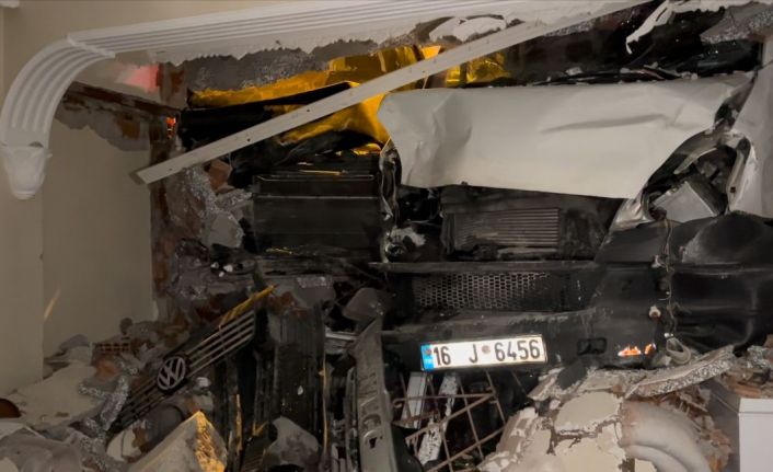 Bursa’da şiddetli lodosa yenik düşen kamyonet, park halindeki otomobile çarptıktan sonra giriş katındaki dairenin salonuna girdi. Trajikomik kazada yaralanan olmazken, araçlarda ve evde maddi hasar oluştu.