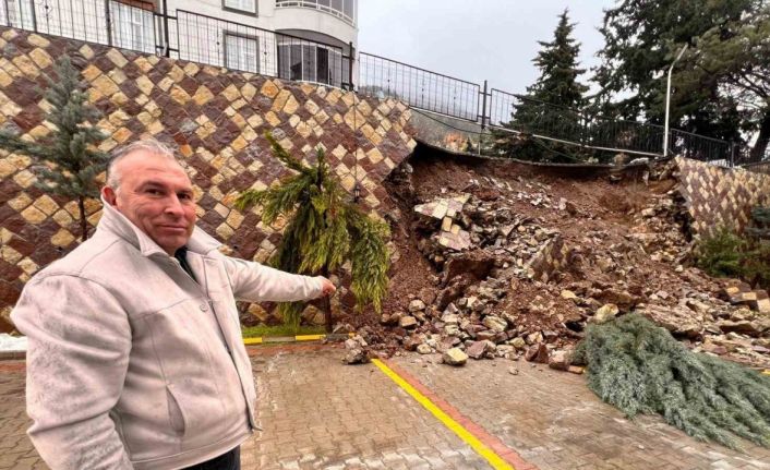Kahramanmaraş’ta etkili olan sağanak sonrası bir sitenin istinat duvarı çöktü.