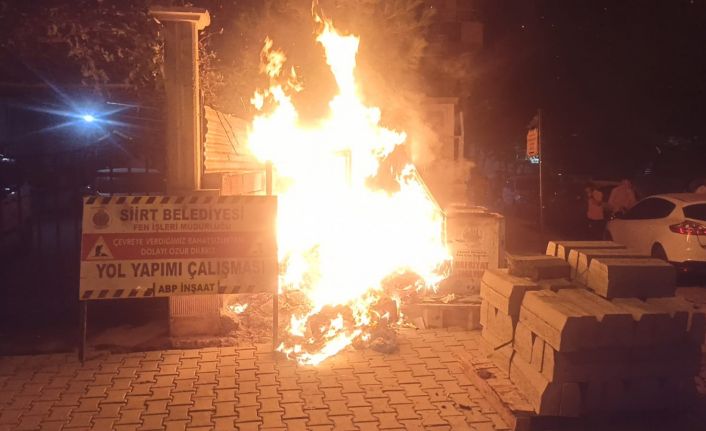 Siirt kent merkezinde çöp konteynerinde çıkan yangın paniğe neden olurken, duyarlı bir vatandaş kovalarla su taşıyarak yangına müdahale etti.