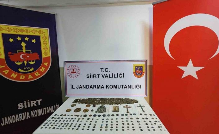 Siirt’te tarihi eser kaçakçılığı yapan iki şüphelinin ikametlerinde yapılan aramalarda 3 bin 72 adet Osmanlı dönemine ait sikke, 154 adet Roma dönemine ait sit sikke, 9 adet insan figürlü obje ve 2 adet haç ele geçirildi.