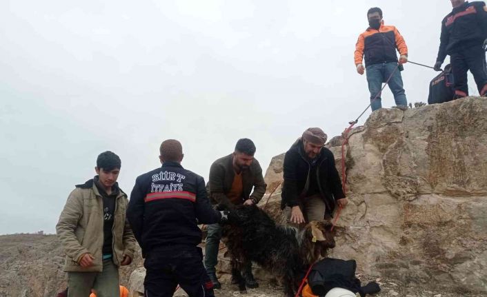 Siirt kent merkezine 3 kilometre uzakta bulunan Delikli Taş mevkiinde mahsur kalan keçiyi gören vatandaşlar itfaiye ekiplerine haber verdi. Olay yerine gelen ekipler, kayalıklarda mahsur kalan keçiyi kurtarmak için çalışma başlattı. 1 saat süren çalışmanın ardından keçi kurtarılarak sahibine teslim edildi.